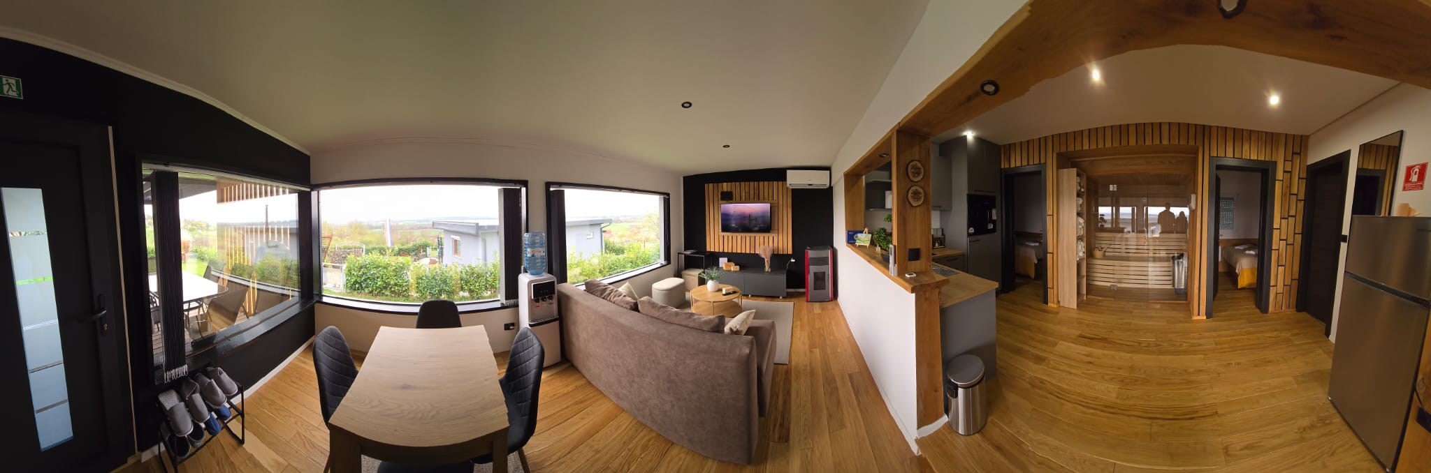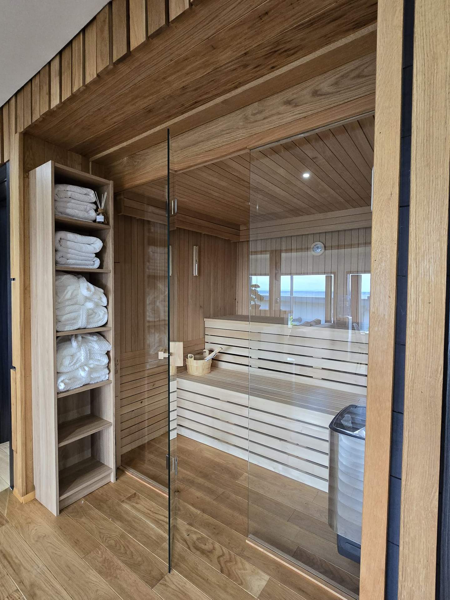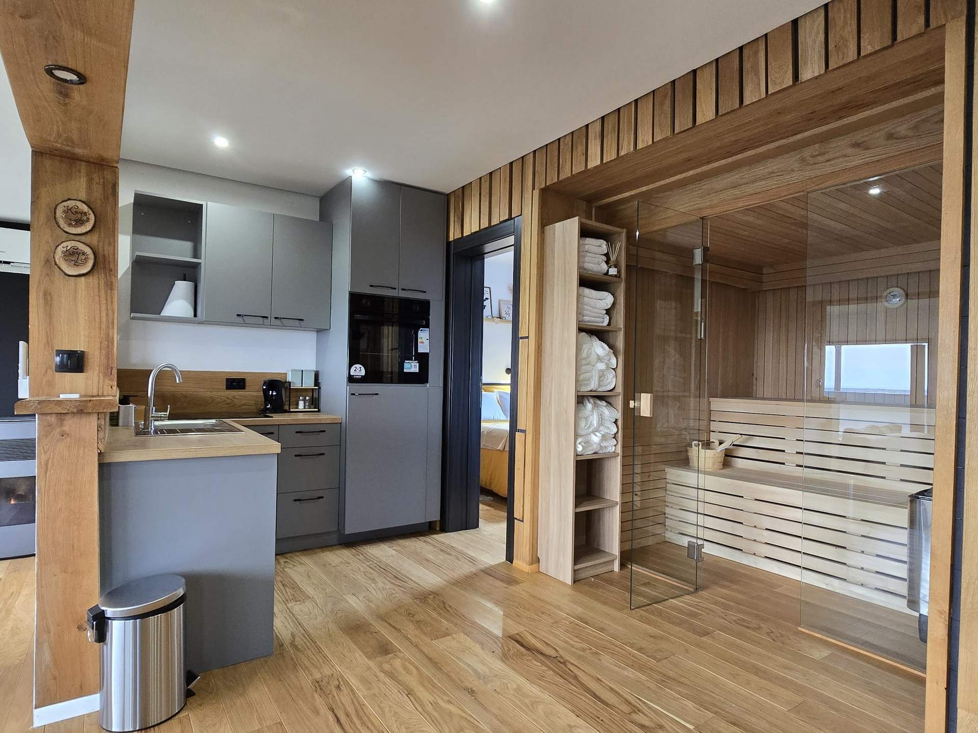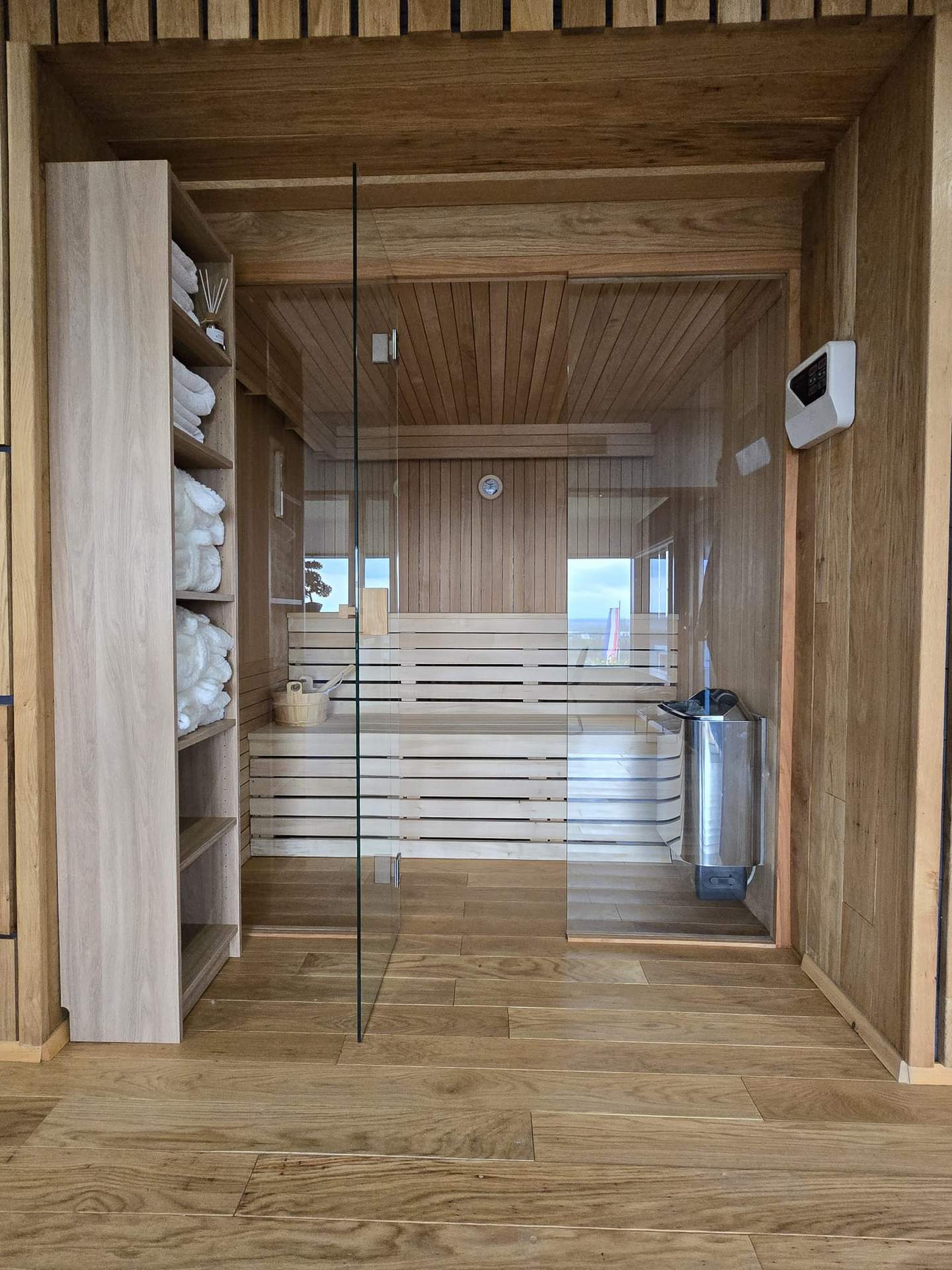 Nakon uživanja u toplini vaše privatne saune, odmah pokraj vas nalazi se ormar s pripremljenim mekanim ogrtačima. Obucite ogrtač, prijeđite u udoban dnevni boravak i nastavite uživati u toplini i opuštajućoj atmosferi. To je savršen trenutak za odmor, razgovor ili jednostavno uživanje u miru koji pruža Panorama House.